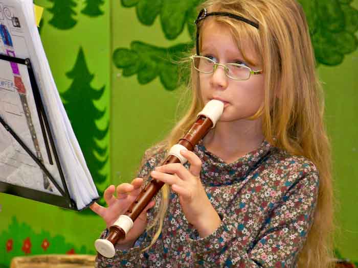 Nathalie zeigt ihr Können auf der Sopranblockflöte.
